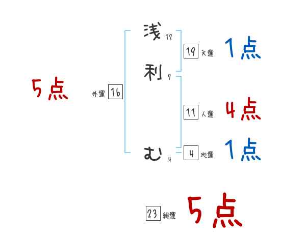 外運![]() | 浅利むさんの外運は16画の5つ星!人望が厚く大きく発展する。逆転成功が見える。 生活面を象徴する運勢です。外部から受ける影響力を表し、結婚運、家庭運や職場、環境への順応性を表します。 |