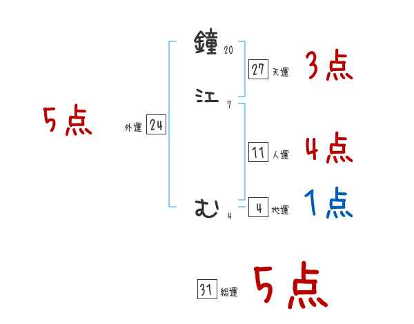 鐘江むさんの画数の鑑定結果