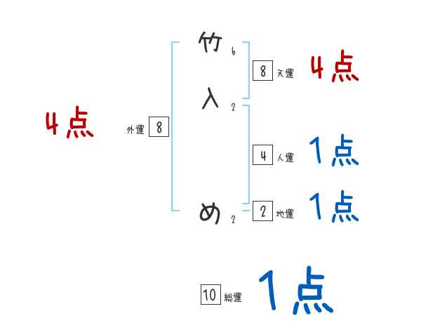 総運![]() | 竹入めさんの総運は10画の1つ星!不安を感じやすい傾向。ストレスを抱えないように注意しましょう。 あなたの人生を表す1番重要な運勢です。生涯を通じて影響する総合運となり、主に50歳以降の晩年期に影響を及ぼします。 |