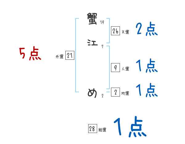 総運![]() | 蟹江めさんの総運は28画の1つ星!家庭環境に注意。スポーツで活躍できる能力があるかも。 あなたの人生を表す1番重要な運勢です。生涯を通じて影響する総合運となり、主に50歳以降の晩年期に影響を及ぼします。 |
