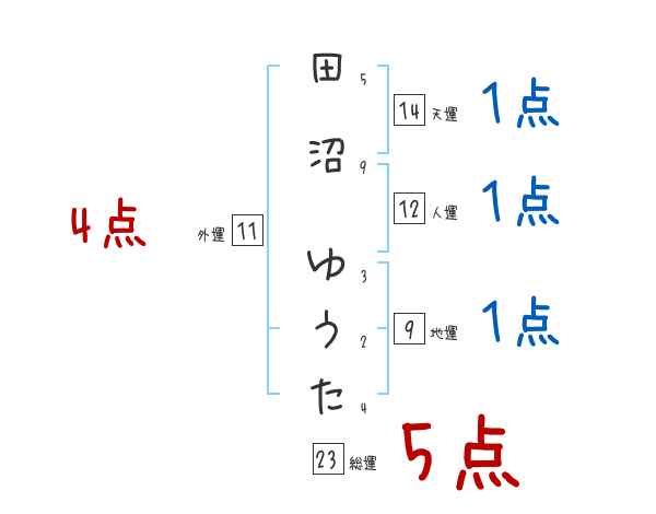 田沼ゆうたさんの画数の鑑定結果