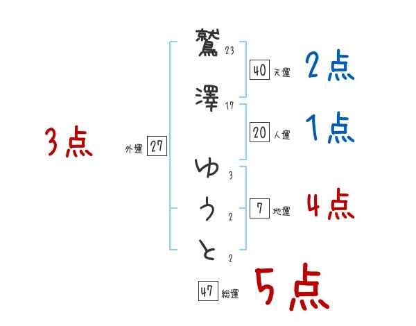 鷲澤ゆうとさんの画数の鑑定結果