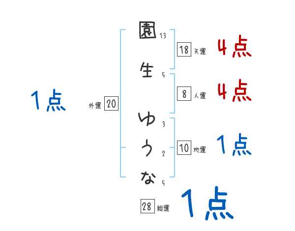 総運![]() | 園生ゆうなさんの総運は28画の1つ星!家庭環境に注意。スポーツで活躍できる能力があるかも。 あなたの人生を表す1番重要な運勢です。生涯を通じて影響する総合運となり、主に50歳以降の晩年期に影響を及ぼします。 |