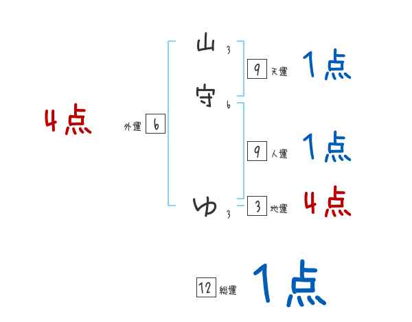 山守ゆさんの画数の鑑定結果