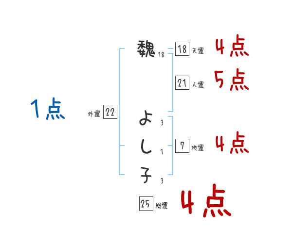 魏よし子さんの画数の鑑定結果