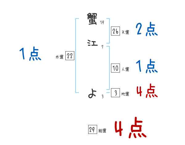 蟹江よさんの画数の鑑定結果