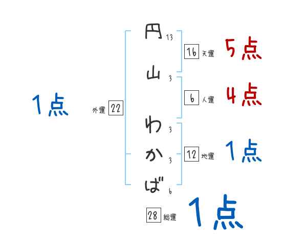 天運![]() | 円山わかばさんの天運は16画の5つ星!人望が厚く大きく発展する。逆転成功が見える。 家系が持つ宿命的な運勢を表します。祖先から受け継いだ苗字ですので自分の力が及びません。家柄を象徴します。 |