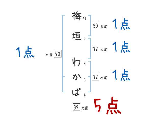 梅垣わかばさんの画数の鑑定結果