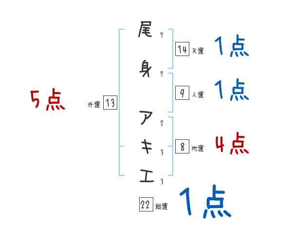 尾身アキエさんの画数の鑑定結果