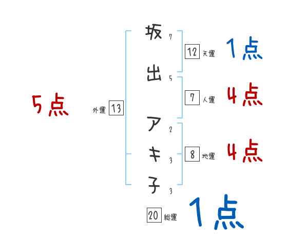 坂出アキ子さんの画数の鑑定結果