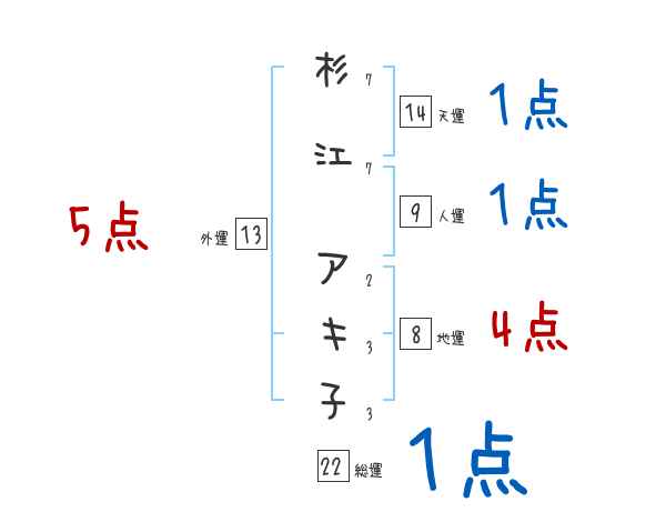 杉江アキ子さんの画数の鑑定結果
