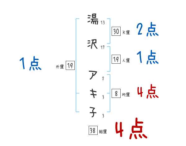 湯沢アキ子さんの画数の鑑定結果