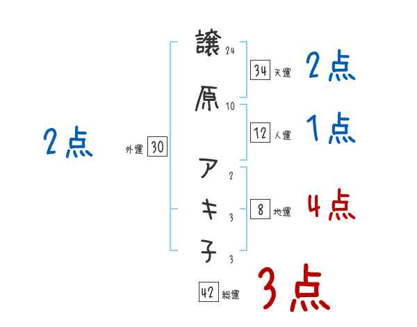 譲原アキ子さんの画数の鑑定結果
