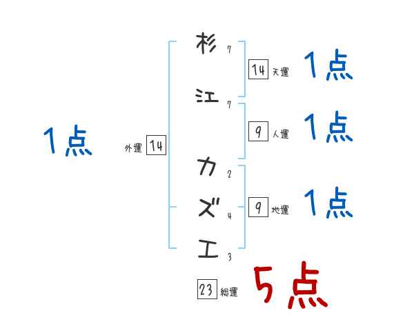 杉江カズエさんの画数の鑑定結果