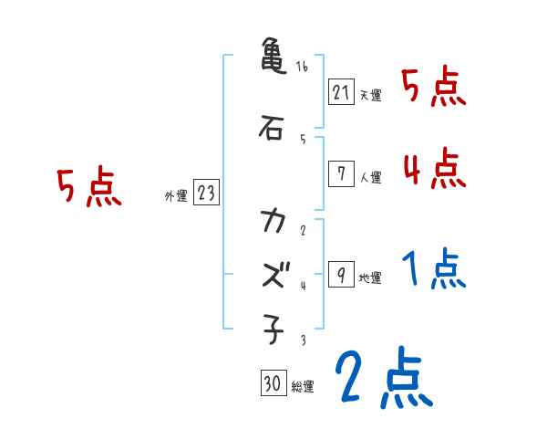 亀石カズ子さんの画数の鑑定結果