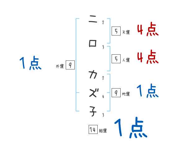 二口カズ子さんの画数の鑑定結果