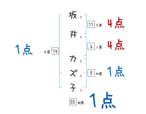 坂井カズ子さんの画数の鑑定結果