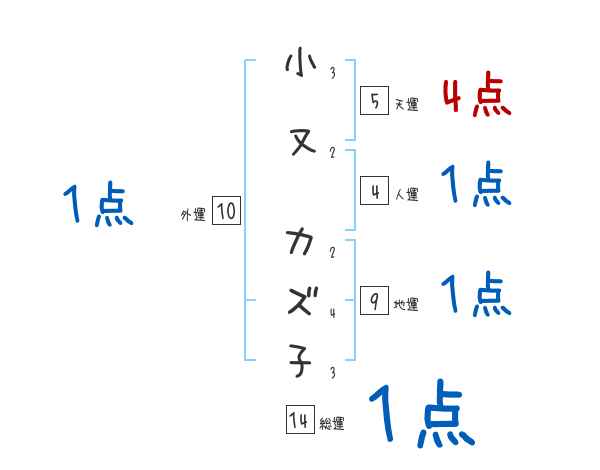 小又カズ子さんの画数の鑑定結果
