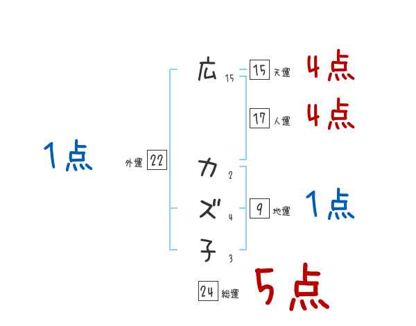 外運![]() | 広カズ子さんの外運は22画の1つ星!努力することが苦手ないっぽう手先が器用。芸術性にも優れる。 生活面を象徴する運勢です。外部から受ける影響力を表し、結婚運、家庭運や職場、環境への順応性を表します。 |