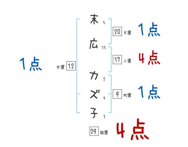 末広カズ子さんの画数の鑑定結果
