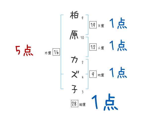 柏原カズ子さんの画数の鑑定結果