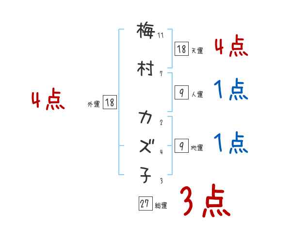 梅村カズ子さんの画数の鑑定結果