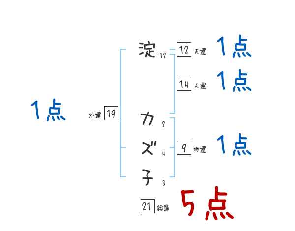 淀カズ子さんの画数の鑑定結果