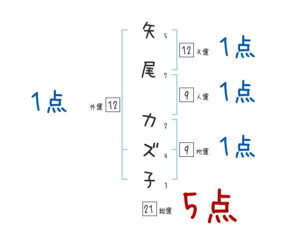 矢尾カズ子さんの画数の鑑定結果