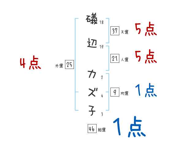 礒辺カズ子さんの画数の鑑定結果