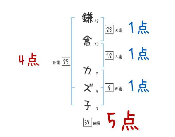 鎌倉カズ子さんの画数の鑑定結果