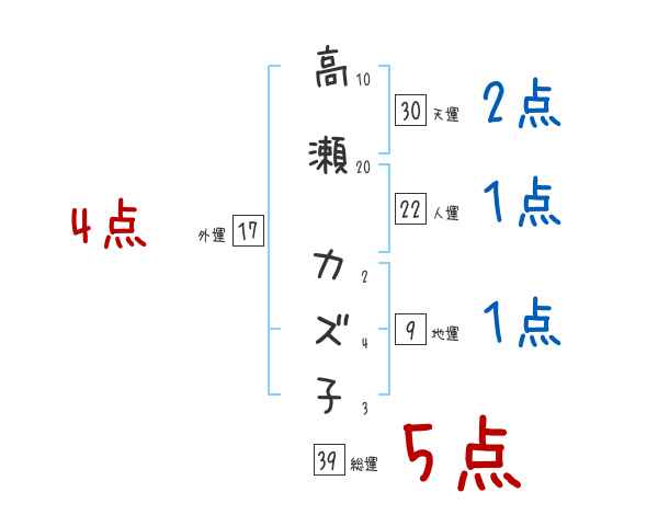 外運![]() | 高瀬カズ子さんの外運は17画の4つ星!積極的な行動力。地位を気づき財産を手に入れる。純粋な心と直感力。 生活面を象徴する運勢です。外部から受ける影響力を表し、結婚運、家庭運や職場、環境への順応性を表します。 |