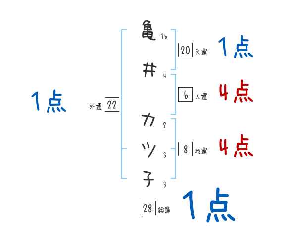亀井カツ子さんの画数の鑑定結果