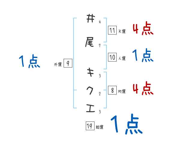 井尾キクエさんの画数の鑑定結果