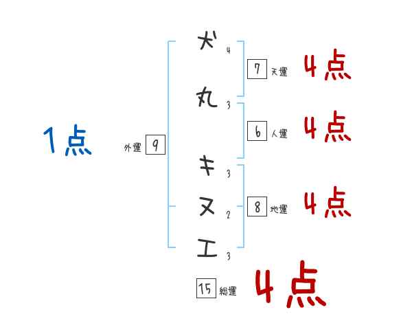 天運![]() | 犬丸キヌエさんの天運は7画の4つ星!強い意志や信念を持ち独立心が強い。自立する。 家系が持つ宿命的な運勢を表します。祖先から受け継いだ苗字ですので自分の力が及びません。家柄を象徴します。 |