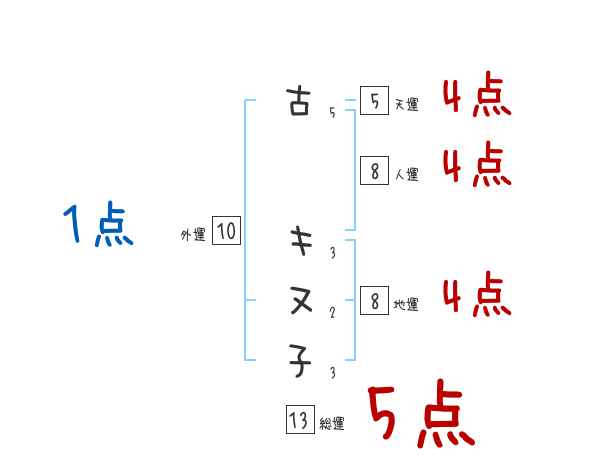 古キヌ子さんの画数の鑑定結果
