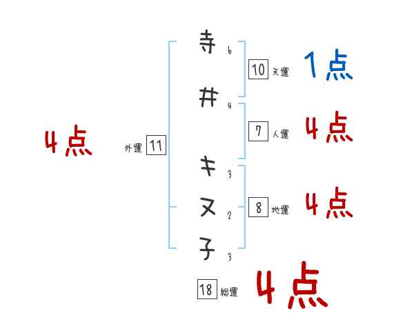 寺井キヌ子さんの画数の鑑定結果