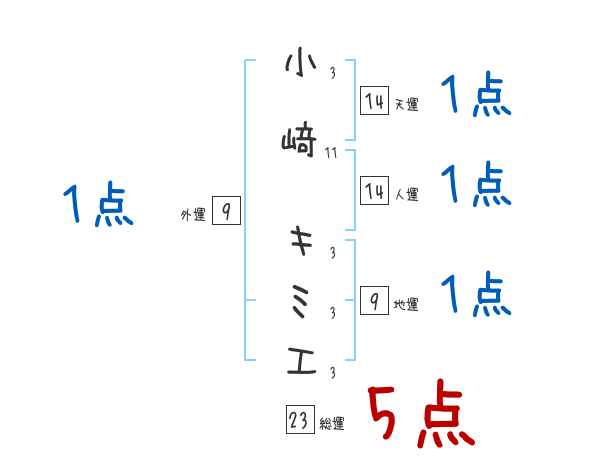 小﨑キミエさんの画数の鑑定結果