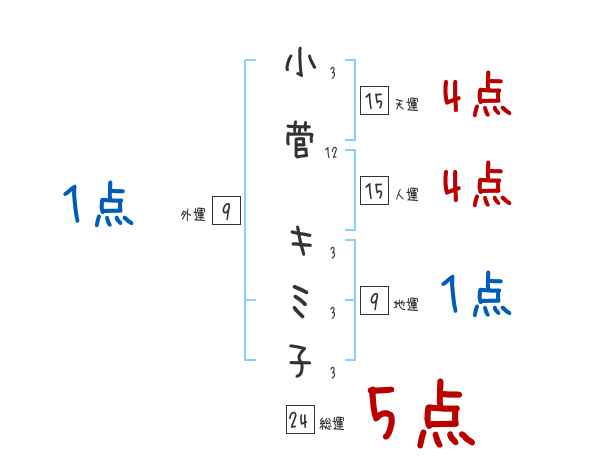 小菅キミ子さんの画数の鑑定結果