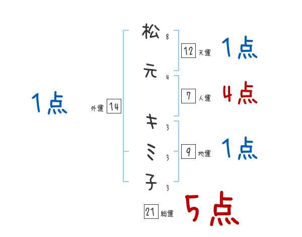 松元キミ子さんの画数の鑑定結果