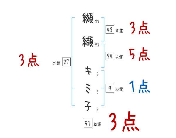 纐纈キミ子さんの画数の鑑定結果