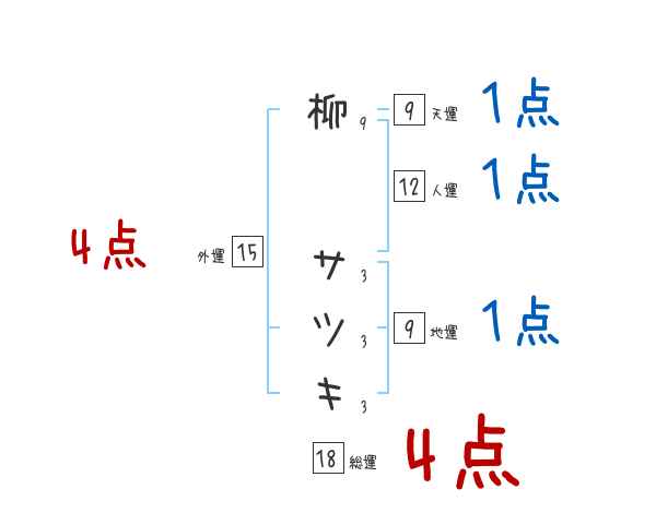 天運![]() | 柳サツキさんの天運は9画の1つ星!消極的で才能を発揮することが苦手なことも。周りの意見に耳を傾けましょう。 家系が持つ宿命的な運勢を表します。祖先から受け継いだ苗字ですので自分の力が及びません。家柄を象徴します。 |