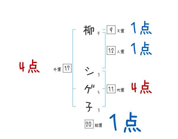 柳シゲ子さんの画数の鑑定結果