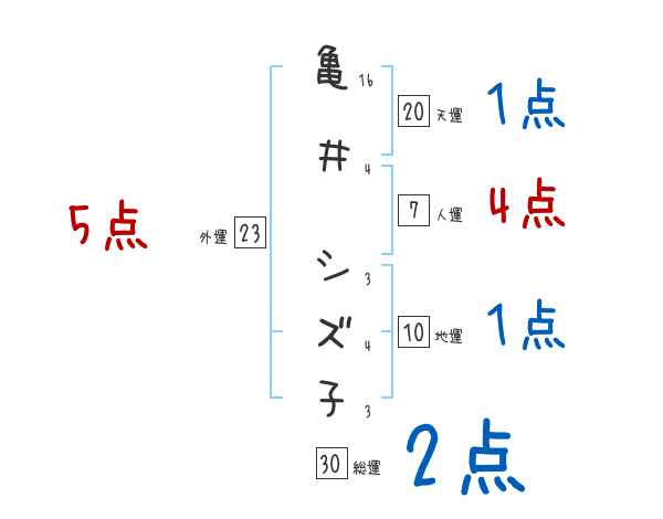 亀井シズ子さんの画数の鑑定結果