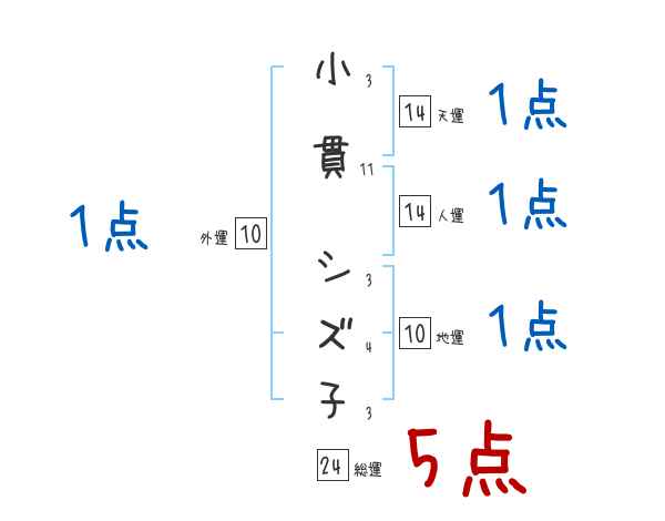 小貫シズ子さんの画数の鑑定結果