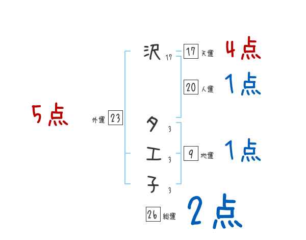 沢タエ子さんの画数の鑑定結果