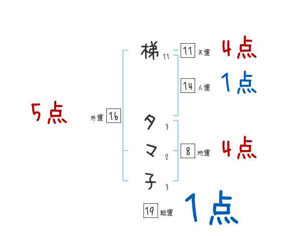 梯タマ子さんの画数の鑑定結果