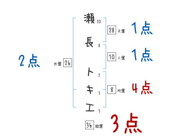 地運![]() | 瀬長トキエさんの地運は8画の4つ星!勤勉家。根気強く努力し成功する。忍耐力がある。 個性を表す基礎的な運勢です。性格形成や対人関係、行動力など家庭環境に影響されます。主に誕生してから20歳くらいまでの若年期の運勢を表します。 |