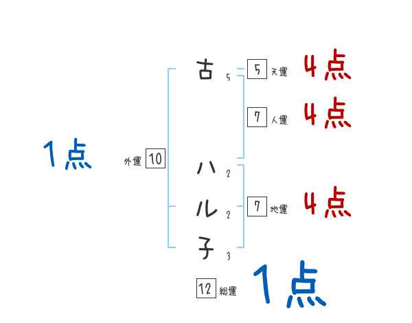 古ハル子さんの画数の鑑定結果