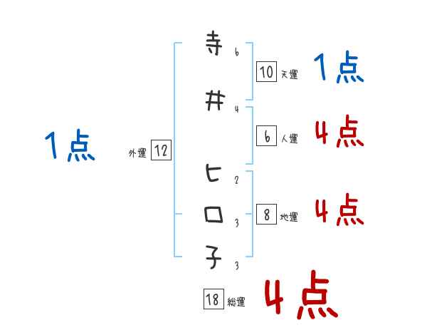 人運![]() | 寺井ヒロ子さんの人運は6画の4つ星!慎重な努力家で信頼を得る。誠実な精神で向上心に優れる。 性格や才能などを表す2番目に重要な運勢です。人間関係や協調性、社会的な成功に影響します。主に20歳から50歳ぐらいまでの中年期の運勢を表します。 |