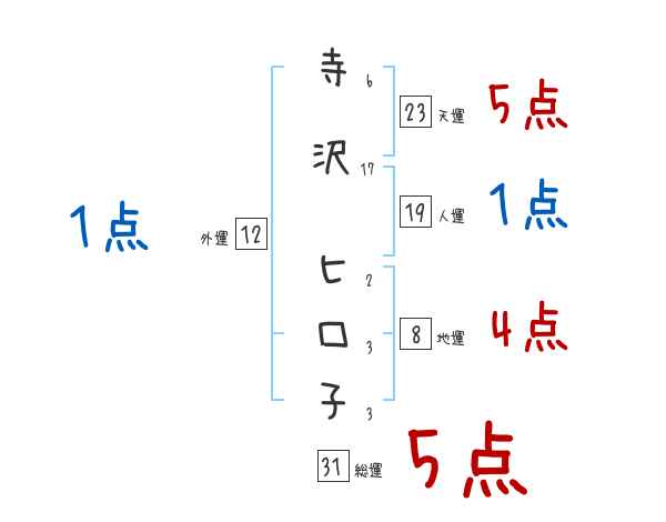寺沢ヒロ子さんの画数の鑑定結果